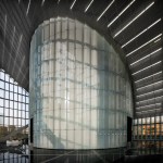 The buildings strong presence derives from the simplicity of its form, the clarity of its structural systems and the expressive values of the twin shell façade; transparent, translucent, opaque, reflective and luminous. The layered screen dematerializes and thus renders the building in a variety of intriguing ways. Its character derives not from a formal and stylistic pursuit but as a result of its material and functional aspects.