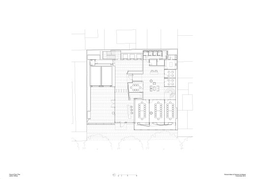 The office tower’s design, with its refined, formal vocabulary, reflects the distinct orientation of the site while addressing issues of sustainability, maximum efficiency, and flexibility. The entire building is recessed from the urban frontage and shielded by a carefully composed set of louvers along the western elevation designed for both maximum sun shading and privacy.