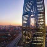 Straddling this tunnel, the tower’s design divides its volume into two halves enclosed by a single facade shell. The emerging space between these two halves extends the full height of the tower, creating the world’s tallest atrium at 194.15m which rotates through the building as the tower rises to realign the upper floors with Lize road to the north.