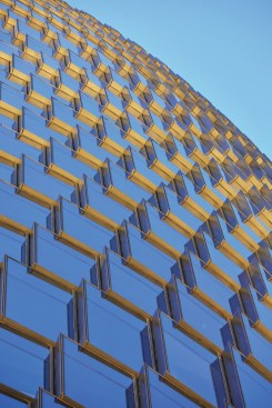 Leeza SOHO’s double-insulated, unitised glass curtain wall system steps the glazing units on each floor at an angle, providing narrow ventilating registers to draw outside air through operable cavities where required; creating extremely efficient environmental control for each floor.