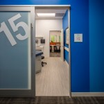 To increase staff efficiency and reduce “path of travel” time, the design team implemented on-stage/off-stage workflow with two points of entry/exit into patient exam rooms. This results in better communication between the clinical team, allows more patient privacy, and most importantly, reduces medical errors.