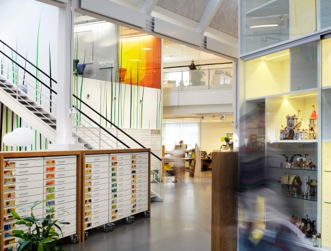Future LEGO® products are created in the development department LEGO® PMD. Now, the department’s designers have a work space where the physical setting supports the playful character of the work.