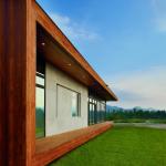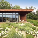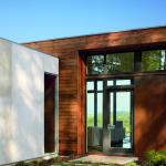 | The Leicester home is a modern and minimal example of architectural brilliance. The home is placed perfectly amongst its wide-open surroundings. A broad range of standard Marvin window and door options were all carefully coordinated with the very professional Marvin team. The solution of a window wall along the south and west façades of the upper level brings the outdoors in. This custom configuration of standard Marvin products is integral to the vision of the house, as well as the economics of its construction. Punched windows in the lower level, also by Marvin, contrast nicely with the expression of the main living area. A continuous transom of glass at the entry façade allows morning light to dapple across the interior ceiling. The fenestration was integral to the very premise of the house, unifying the interiors with the site’s mountain views. |
