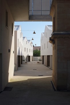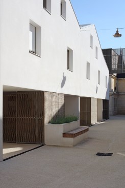 Cette mixité bâtie a été imaginée autour d’une maison en pierre existante en bord de rue. La question fondamentale réside dans l’intégration de cette architecture patrimoniale, dans une opération de promotion immobilière.
