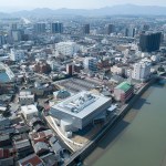 Yukuhashi City, in Fukuoka Prefecture, is located about 25 kilometers South-Southeast of Kitakyūshū City. It is a central city of the Keichiku Region with a population of roughly 70,000 people and, in recent years, has become a commuter town for those working in Kitakyūshū City. The name “Yukuhashi” comes from a merger between two former villages by the municipal system: the [行- read as “yu”] from the former Gyōji Village (旧 行事町) and the [橋] from the former Ōhashi Village (旧大橋町) make [Yukuhashi・行橋]. The planned site of the project was positioned along the right bank of the Nagao River on the boundary between the former Gyōji and Ōhashi villages while repairing and preserving the townscape of the two former village areas.