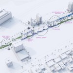 Another feature of the project is the ring in the center at the second floor level. This is a kind of connecting part between three territories: a children’s, shopping blocks and a park. We can say that this is a «ring of time». We grow up and become adults, but our children give us the opportunity to return to childhood and re-learn. The park serves as a common space for recreation.