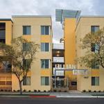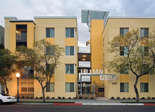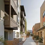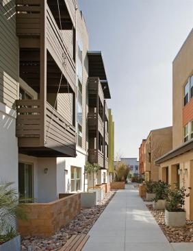 He and project designer Kevin Nivinskus didn’t try to force a sense of cohesion through architectural homogeneity. Instead, they emphasized the downtown San Diego project’s eclectic nature by breaking it into several buildings. Varied color schemes and detailing give each one its own distinct design identity. An existing historic building was restored for use as a meeting and exhibition space. And a landscaped walkway winds all the way through the community, providing the connective tissue that holds the buildings and public spaces together.