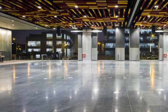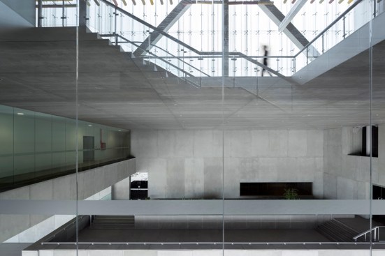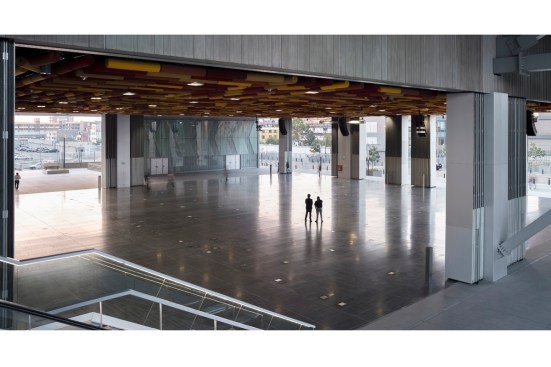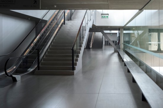 The near 15,000 m2 of net area correspond to the 18 multipurpose convention halls, their sizes and proportions varying from 3,500 m2 to 100 m2, which allow for up to 10,000 people to attend simultaneous events. The rest of the program is completed by four underground car-park floors as well as several uses above ground that complement the conference rooms. These would include areas for translation and general management of the centre, stockrooms and toilets, workshops and areas for maintenance and material distribution, kitchens and dining areas, exhibition halls, cafeterias and relaxation areas. This all generates a total built up area of 86,000 m2.