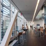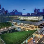 Though its campus houses many of New York’s most preeminent performing arts institutions, Lincoln Center felt it was still missing a small theater amenable to emerging playwrights and more intimate performances. But it was also missing something else: available space to build such a theater. The dense Manhattan neighborhood wouldn’t allow any give in the campus footprint, and though there are open plazas, these have become canonical urban areas in their own right. In the end, H3 Hardy Collaboration Architecture settled on an unlikely solution: perching the new 23,000-square-foot Claire Tow Theater, home to Lincoln Center Theater LCT3, atop the Eero Saarinen-designed Lincoln Center Theater.
