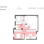 Step 4 The space between the prism and the L-section plane is disposed for the sanitation areas of the residence: a WC on the lower floor and a full bathroom servicing all the 3 bedrooms of the loft.