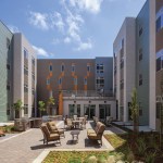 Designed by local firm HKIT Architects, this 128-unit affordable senior community is the fifth and final phase of a HUD Hope VI public housing project in Oakland, Calif. The 100,922-square-foot complex—built by Nibbi Brothers General Contractors—is laid out around a central courtyard and faces a park that is part of the larger master plan for the redeveloped neighborhood. The building’s bulk is diminished by a lively composition of varied materials and colors that are arranged with a decidedly small-scale rhythm that makes its impressive 86-units-per-acre mass seem less imposing. A patchwork of varied window openings and sunscreens make the building a refreshing addition to the neighborhood while still meeting a modest budget.