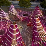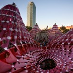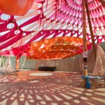 Ball-Nogues principals, Benjamin Ball and Gaston Nogues, describe the experience of their installation: “When you step into Liquid Sky, you’ve set your mind and body free from the weight of the urban environment and are submerged into an atmosphere of soothing exhilaration, subtle stimulation, and inspirational calm. As the installation changes from day-to-day, even hour-to-hour, your expectations create your own unique experience.”