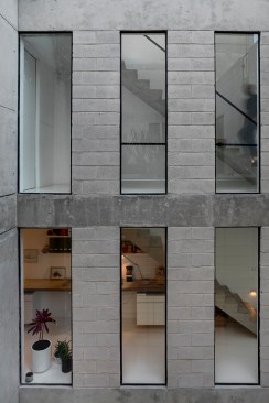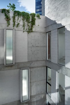The Lisboa 7 project was able to identify a series of design variables that allow the housing to gain value over time and be part of the existing social fabric. We developed building that was as densely populated as possible by splitting up the maximum density allowed into six volumes. Each volume is 3.60m wide and the separation between them is of four meters. This allowed each space to have cross ventilation and light. All the living spaces face westward; the east side is closed almost entirely to provide privacy to each unit. When working with dense housing, the quality of the spaces is very important, so we provide natural light, ventilation and views when possible. The east façade of each volume is a vertical garden to allow for a nice view from all the units.