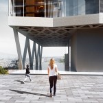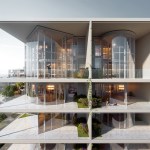 The facade of the building is treated with exposed concrete and high-quality, double-glazed glass panels, as well as with back-painted glass. The balconies and terraces are covered with white marble slabs. A new green space to the east of the building gives landscaping context to the building, as well as fulfilling the Green Town vision of dedicated recreational space for residents.