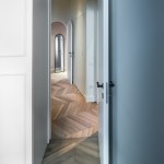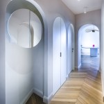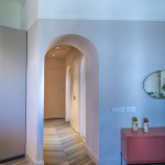 The concept of bringing the classical Milan courts in the space, is emphasized by the symmetrical arches that stand out around the new central axis. A total demolitions of the existing walls was necessary to create the new point of view through the main hallway to the windows of the living room.