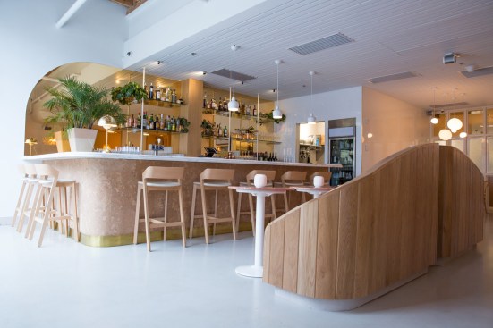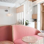 Little Octopus is an extension of the namesake brand started at Pop, offering customers a sophisticated, richly textured update of the Nashville favorite. We looked to old school Miami for inspiration, equipping the space with flora, linen, and stained sherbet colored glass. Transforming the space meant taking it out of the dark: exchanging the heavy opaque facade with a wide expanse of glass that glows from within, as well as lifting and puncturing the ceiling to let light in. Little Octopus echoes a longing for shore break, emphasized by pops of coral and translucent layers.