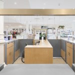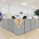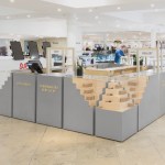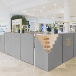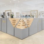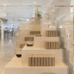 The concrete cubes were constructed from Birch Plywood and composite concrete cladding. These cubes are then eroded to display the product at the corners where customers walk by.