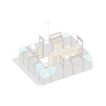 Elemental concrete cubes sit in a square around the jewellery making zone. This defines the public and private zones. The making station was positioned in the middle so as the makers where not to be distracted by the customers walking by. Two hidden doors allow access to the interior.
