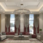*A high ceiling is usually desirable, especially for a living room. It helps to bring in more light and to create an airy and spacious interior. Adapting the design to take advantage of this architectural feature can be challenging. We used beautiful color variant of red and beige which give a vibrant look.