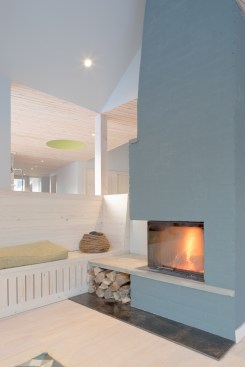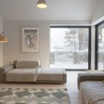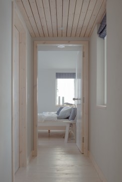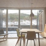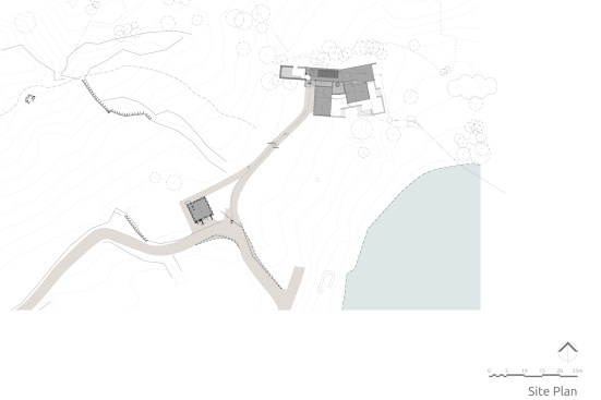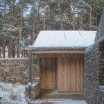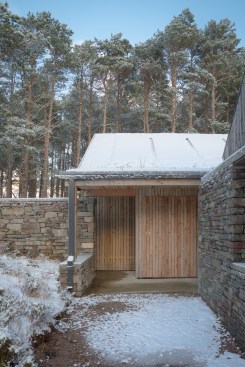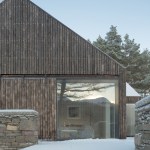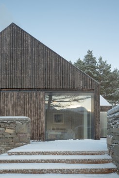 The modular form of the house, made up of three simple, pitched-roof volumes, reduces the apparent scale and the height of the roofs and allows sections to be isolated and left unheated when not required. The scale of the individual sections related to that of the small buildings and shelters that have stood on the peninsula in the past, the ruins of which still remain. The design does not try to copy the style of existing building in the area but its straightforward use of local stone and timber and simple forms are common with the traditional croft houses and agricultural buildings of the Highlands.