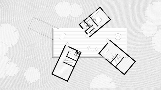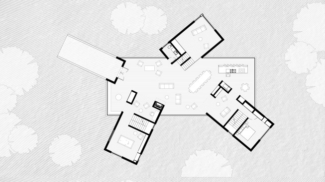 Lockwood BnBnB challenges the Single-Family (Vacation) Home type, proposing a structure capable of housing one, two, three, or more families simultaneously. Three guest towers support variably linked common spaces, allowing a year-round choreography of inhabitants who effortlessly commune or retreat, creating a moment of density in a vast mountain landscape.