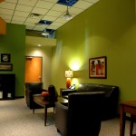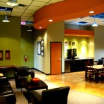 The new headquarters is located in a single story tilt-up building. Use of reveal patterns creates the concept and feel of columns in a cost-effective manner. Natural stone at the entryways provides a finished look and are further translated into the interior to create a smooth transition as guests enter the building.