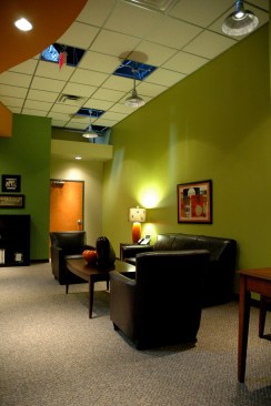 This multi-media classroom tool provider desired a trendy urban aesthetic for their new office headquarters and distribution facility.