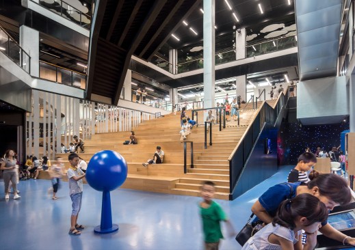 The fluid forms also channel air currents and provide protection against the sun and rain in Shenzhen’s subtropical climate. By sharing the same formal language, height and material, the volumes form a visually cohesive whole without an apparent front or back facade.The Longgang Cultural Centre has four main programmatic elements: an art museum, a youth centre, a science centre and a book mall. The science centre focuses on popular science for children and young adults. Next to it, the youth centre offers a place for meeting and extracurricular activities such as music and sports. The art museum combines public arts on the upper floors with an urban planning centre on the ground floor and in the basement.