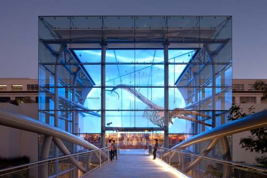 Design commissions for the Natural History Museum of Los Angeles County include an expansion and re-imagination of the North Campus that includes a redesigned front façade with an entry bridge, pedestrian-friendly terraces and communal areas, and a two-level car park, and proposes a series of glass pavilions housing a live butterfly collection, museum shop and ticket office, museum café, and outdoor dining. A 3.5-acre landscape program provides gardens and outdoor learning environments. Modernization efforts began in 2006 with the renovation and seismic upgrade of the iconic 1913 Building – the first phase of an institution-wide metamorphosis (including the roll–out of major new exhibitions) leading up to the museum’s 2013 centennial.