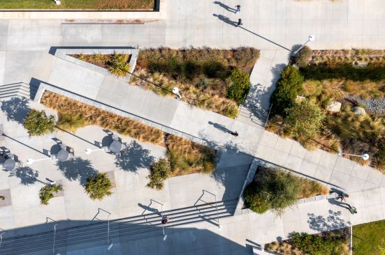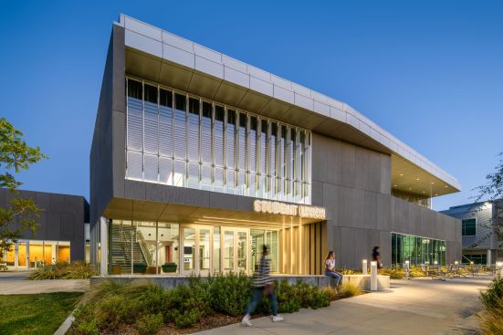 Together, the Student Union and Kinesiology Complex enhance student life and transform the heart of the college campus by creating a common language of design derived from campus context and then by stitching into the fabric of the campus with a connective landscape. The design activates the campus by connecting indoor program with outdoor spaces; every outdoor space is programmed to enhance student life.