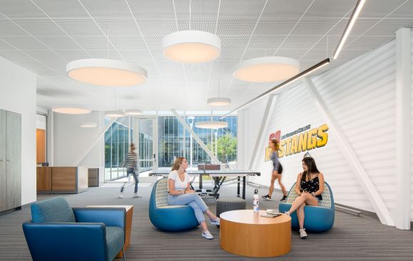 Los Medanos College has developed immensely since its creation in 1974 to further serve the growing community of Contra Costa County. With over nine thousand students attending, the college has looked to expand and make strides toward completing its master plan for a better and more connected campus community. The most prominent element of the 2007 master plan was the need for a student “living room” – the Student Union. The Student Union includes spaces for student life, student government, the bookstore, clubs, food service, meeting spaces, learning communities, event spaces, and outdoor dining and gathering. In addition, the college wanted to create better opportunities for student health and wellness, expand course offerings, and attract student athletes with the new Kinesiology Complex.