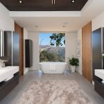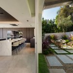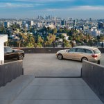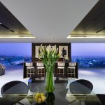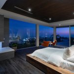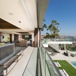 It is always our ambition for our clients to experience an emotional and sensory reaction upon entering a house of our design. “Ahh” and “Wow” mean we’ve succeeded. Usually this initial response comes when passing through the entry, or looking out to the horizon from inside the central living area, but for this project, located in the Outpost Estates area of the Hollywood Hills, the thrill begins while still in your car. “The property is situated at the end of a cul-de-sac, and we pushed the site out as far as possible on the slope, so the house is well below street level,” Marc Whipple explains. “This allowed us to do an upside-down house; the approach is a curvy elevated driveway that’s pretty steep. As you go down the views just get better and better, the gates open and you are onto the roof of the house, completely surrounded by south-facing “jetliner” views. So the whole experience for the homeowner or a guest, just getting to the house, is very dramatic.”