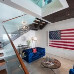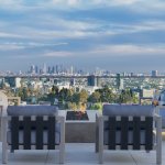 Each terrace is the roof of the level below it, a modern Californian interpretation of the terraced hillsides which overlook the Mediterranean Sea. Marc explains,“Terracing down the hillside worked well on this property, stacking the floors on top of one another maximizes the glass area and obviously the exposure to the view.” And these views include the iconic Hollywood sign and Downtown Los Angeles. Marc is always mindful of how the people occupying the house can relate and connect. This “living small” concept means that even in a large house people are connected visually; the L-shape of this design along with lots of glass offers views across to the other side of the house, and the terraces provide sightlines to each other as well.