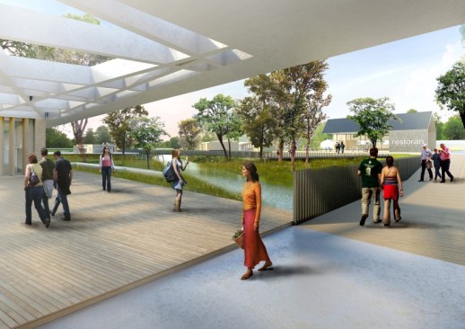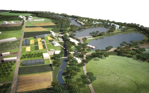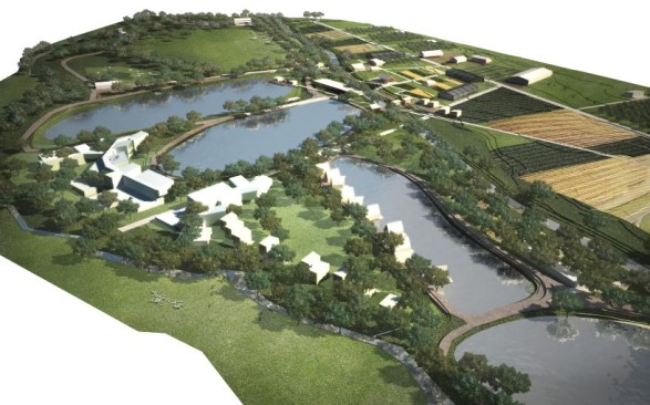 The master-plan includes various types of accommodation facilities, small conference rooms, open-air event and concert areas, workshop areas, a small market, green houses, organic farms, permaculture facilities, animal barns, compost management and waste disposal facilities, small scale energy production systems and various water related leisure facilities.