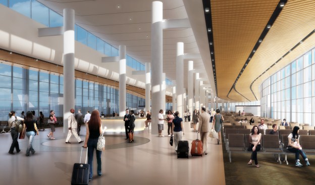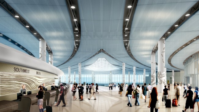 Conceived as a major economic driver for New Orleans post-Katrina, the new North Terminal at Louis Armstrong New Orleans International Airport (MSY) has been called “the most transformative project for New Orleans since the Superdome” by Mayor Landrieu. As part of a joint venture with Atkins, LEO A DALY is working with the New Orleans Aviation Board to develop the long-term program, with a design based on the brownfield expansion north of the existing airport. The effort included the development of four site alternatives for evaluation and identification of a preferred potential terminal development. The site alternatives included the complete refurbishment of the existing terminal in its current location; reconstruction and expansion of the existing terminal in a multi-phase, in place approach; a new terminal facility west of the existing terminal with the closure and potential removal of the existing terminal; and construction of a new terminal building with air-side and land-side improvements on the northern, brownfield side of the airport. After evaluation, the brownfield site was chosen. The conceptual design for the new terminal on this site was developed in collaboration with Pelli Clarke Pelli Architects. The new development will include an approximate 650,000-SF terminal of 30 Group III contact gates, which will ultimately be expanded to 42 gates. The design includes the following major components: a 2,000-space parking garage; Interstate-10 highway connection; hotel development site; aircraft apron; Federal Inspection Services (FIS) and swing gates for international traffic; in-line baggage handling system; retail development; consolidated security screening checkpoint; inbound and outbound baggage; airline ticket offices; and ticketing hall.