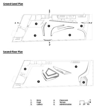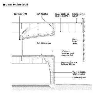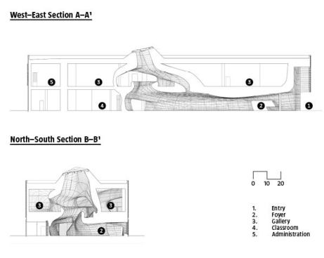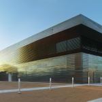 28,000-square-foot, two-story box, with copper cladding that swirls