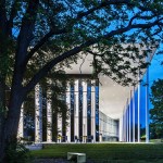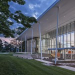 The building was conceived as a pavilion in the park, reintroducing patrons to an almost forgotten community landmark: the civil war era, national register designated Bellevoir home and grounds. This 13-acre formal lawn was protected during the development of the surrounding suburban office park, yet was effectively cut off from the public as tracts were developed to maximize street frontage and traffic efficiency. The design team sought to celebrate the site’s remarkable history by shaping itself as a deferential frame to this landscape.