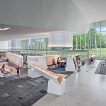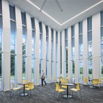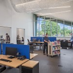 A column free interior space enables ultimate flexibility for short-term adjustments and adaptability for long-term changes. A pressurized access floor plenum maintains greater occupant comfort with less robust equipment which, when partnered with daylight responsive LED lighting, exceeds the AIA 2030 challenge with systems that are 70% better than a typical public library. The site design nestled the building against numerous mature trees, affording patrons remarkable views and shaded outdoor amenities.