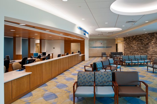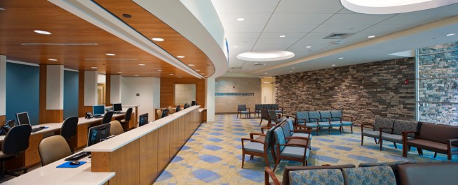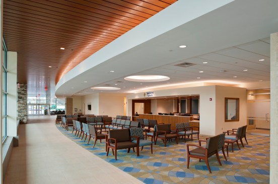 This satellite ambulatory center is 50,000 SF and includes a cardio-vascular center of excellence, a cardio-vascular testing center, an orthopedic, rheumatology and sports medicine center of excellence, a bariatric surgery practice, a diagnostic imaging center, a testing lab, physical therapy and wellness, and a conference/education center. This project represents and innovative adaptive reuse project: the building, a single story “bix box” has had multiple reincarnations, starting as a supermarket. The “big box” concept lends itself well to repurposing for healthcare because the large structural bays and high roof structure offer the highest degree of planning flexibility.