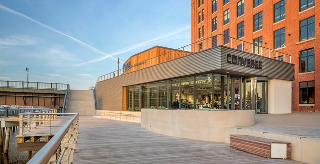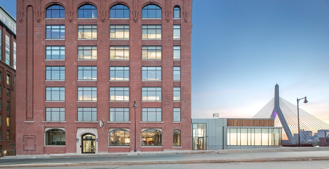 A highly visible gateway project, this new mixed use development, together with the TD Garden sports arena, frames the southbound approach to Boston from the landmark Leonard Zakim Bridge where the Charles River meets the Boston Harbor. The project, permitted under both Boston’s Article 80 Large Project Review as well as Massachusetts’ rigorous Chapter 91 licensing process, proposed the demolition of one of two existing nine-story industrial brick structures on the site, its replacement by a new 15-story tower, and the renovation and adaptive reuse of the remaining building. The design also includes the reconstruction of a 30,000 square foot wharf structure into a new waterfront plaza and construction of a 7,000 square foot wharf pavilion. The renovation portion of the project accommodates the new corporate headquarters for world-renown sneaker manufacturer, Converse, Inc. As master planner and architect-of-record for the new Lovejoy Wharf complex, the firm was also the Executive Architect for the exteriors of both the Converse retail store and the one-story recording studio, Rubber Tracks, which sit on the wharf structure itself.