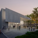 The 29,000-square-foot building is strategically positioned to form a new campus quadrangle and outdoor plaza that will function as an open-air performance stage and a social and gathering space for the entire Loyola community. A 125-linear-foot undulating curved glass wall will blur the distinction between indoor and outdoor spaces.