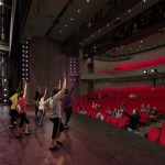 Inside, a spacious lobby and gallery space will lead to the Leemputte Family Theater, a 565-seat proscenium theater with a balcony, orchestra pit, fly tower, and state-of-the-art lighting and production technologies. Adjacent to the theater is an offstage rehearsal and staging area; a fully equipped scene shop; a green room; makeup and dressing rooms; and a flexible student lounge connecting the center to the fine arts wing on the east side of Loyola’s Wilmette campus.