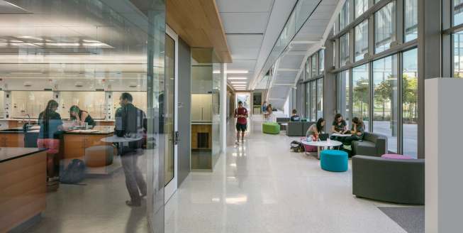 As the first new building designed under the LMU Campus Master Plan, the Life Sciences Building establishes new campus aesthetic standards in a modern, interdisciplinary facility for biology, chemistry and natural science. The science center contains teaching laboratories, lab support space, faculty offices, classrooms, shared public spaces, a 280-seat auditorium serving the entire campus, and a 272-vehicle subterranean parking structure. The project objectives of achieving interdisciplinary collaboration, sustainability, and connectivity have informed the design process, resulting in a prominent campus building that will itself serve as a teaching tool.