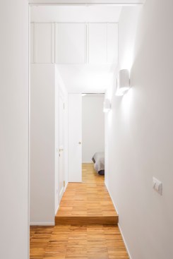 The floor to ceiling pocket door to the bedroom gives a sense of continuity throughout the spaces, taking advantage of the length of the corridor and allowing the natural light to reach every room all day long.