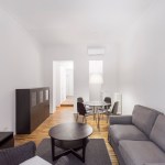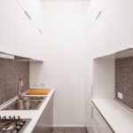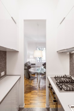 The careful design and distribution of the spaces has allowed for a kitchen that opens into the living room, a guest bathroom and an additional dressing room for the bedroom all located to the centre of the apartment.