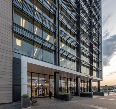 The new design of Lubbock Citizens Tower brings a human scale to an iconic modernist structure and enhances the user’s experience. The project has sparked significant private development in the core of the city, serving as a catalyst for revitalization and renewal. The design team drew inspiration from the surrounding region’s rich history in the cotton industry. By blending white and gray materials with a warm terra cotta, the building reflects the natural colors of the local landscape and the existing Lubbock building stock. The clear glass used serves multiple purposes, including promoting transparency in government by maximizing views into the building, providing occupants with great views outward, and maximizing energy efficiency by allowing passive heating in the winter. In applying a new high-technology skin to an existing structure, the project uniquely blends new and old to create a welcoming, all-inclusive civic space.