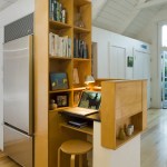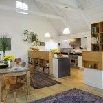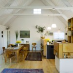 The clients desired a versatile, informal family home centered on a bright, day-lit main room that could comfortably accommodate a range of uses as well as objects, furniture and pictures. White surfaces interplay with natural wood cabinets and floors to add warmth and detail throughout the house. The main space abuts a private, narrow garden, and multiple pairs of French doors are used to open the building to the exterior space, light and vegetation.