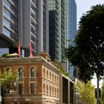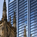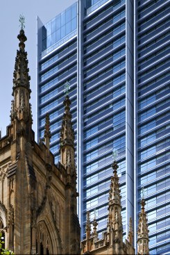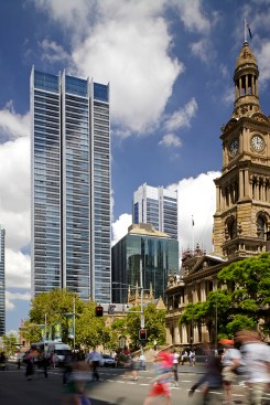 The Lumiere Apartments are designed as models of sustainable, high-density urban form, combining home, work, commerce and leisure in the heart of Sydney's central business district. The development occupies a prominent position on George Street, the principal north-south artery through this dense part of the city, which is lined with some of Sydney's most significant civic buildings, including the Town Hall and St Andrew's Cathedral. The scheme comprises two towers: the forty-eight-storey Lumière, which has private apartments arranged in eight slender volumes around a central core; and the thirty-three-storey Frasers Suites, which provides a luxurious apartment hotel.
