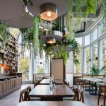 A key feature of the design was incorporating a lush, green, planted environment, that brought relief to the heavy walnut shelving and enhanced the floor to ceiling views of the surrounding Plane trees and neighbourhood green. A large hanging garden made from brushed stainless steel, filled with greens and autumn colour created a rich and tranquil ceiling of flora. A favourite project moment of Hannah Churchill, Founder of hcreates – “One of my personal highlights came during the installation of the furniture and the planting. The planting was one of the very last things to be added and as it was slowly installed, we saw the heart of the concept come to life.”