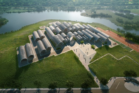 The campus includes the school, dormitory and utility buildings within vaulted spaces that connect directly with their rural surroundings. The classrooms have flexible learning arrangements and outdoor teaching areas.